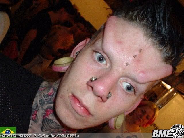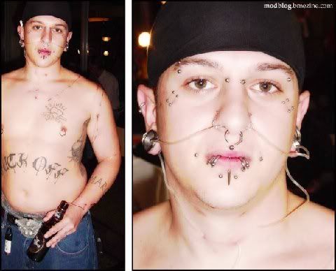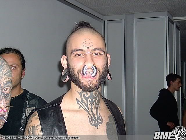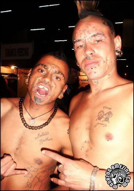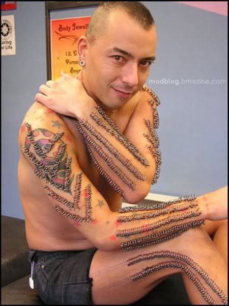 Я недавно в журнале видела фотки аналогичных ужасов. Нет, я понимаю, когда лоюди были дикими, надо было как-то испытывать себя и "сограждан" на крепость. Типа кто хорошо выдержал процесс и последствия - переходит на следующую ступень в обществе. Или своеобразное клеймо на всю жизнь в случае неудачи. А в настоящее время, имхо, свидетельствует об отсутствии ума (да простят меня поклонники пирсинга).