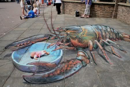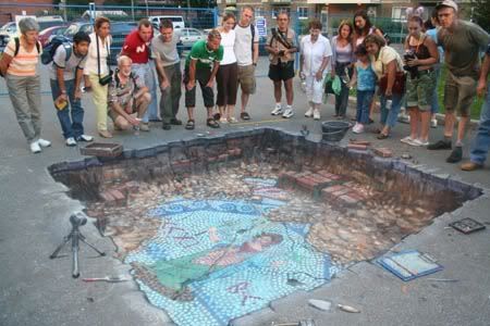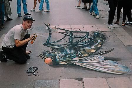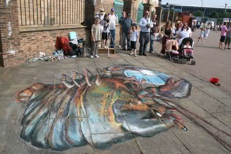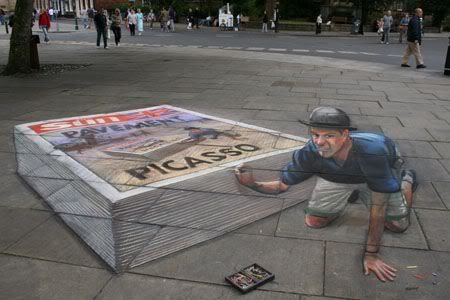 Julian Beever - английский уличный художник, который с помощью мела создаёт 3D картинки на тротуарах Англии, Франции, Германии, США, Австралии и Бельгии. Меломан, в общем. 1.