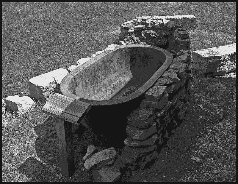 Судя по колёсам, это не ванна, а поилка для лошадей. До чего же добротно сделано!