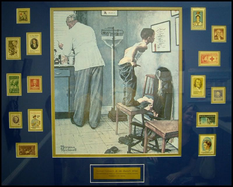 Сама картина окружена марками. Как утверждает подпись - первые издания памятных марок, посвящённых врачам и медсёстрам
