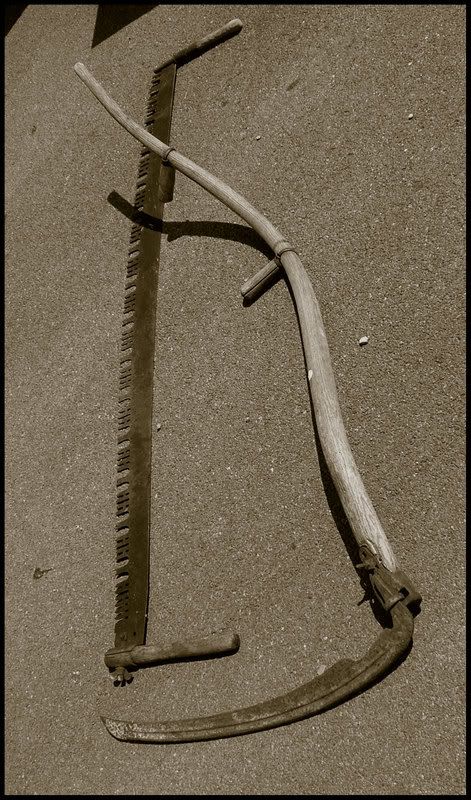 2. Символ Американской КП, аналогичный нашему "Серпу и Молоту". Называется "Saw & Sickle". Лесов в Америке ещё много, в них-то и прячутся американские коммунисты Отсюда же лесопильско-косильная символика. Иногда они выходит в поля и траву косят на прокорм, на прокур. Так вот шастают в зарослях и тихо поют: "По полям, по лесам, нынче здесь - завтра там", шо те зайцы изв песни. И опять в леса, прятаться от правительства, партизанить. А то вдруг доски пилить начинают, значит - зима близко.