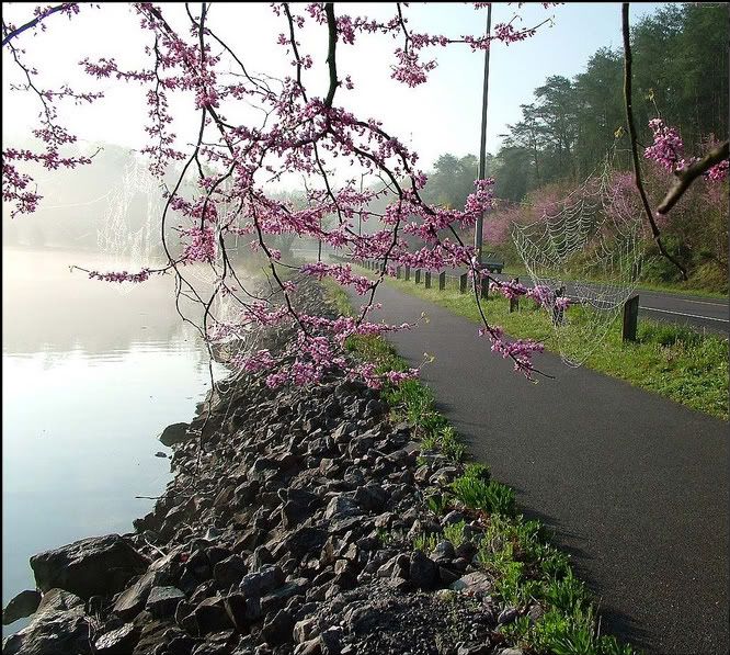 Удивительно красиво. А еще кажется, что паутинка залавливает едущих по дороге велосипедистов. Едут они едут, и вдруг такая паутинка - и все, попались - глаз-то не оторвать!