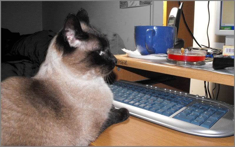 Наш Томас сегодня пришел тереться об клавиатуру которая лежала у меня на пузе и нажал ухом (щекой? усами?) Escape. Редиска. :)