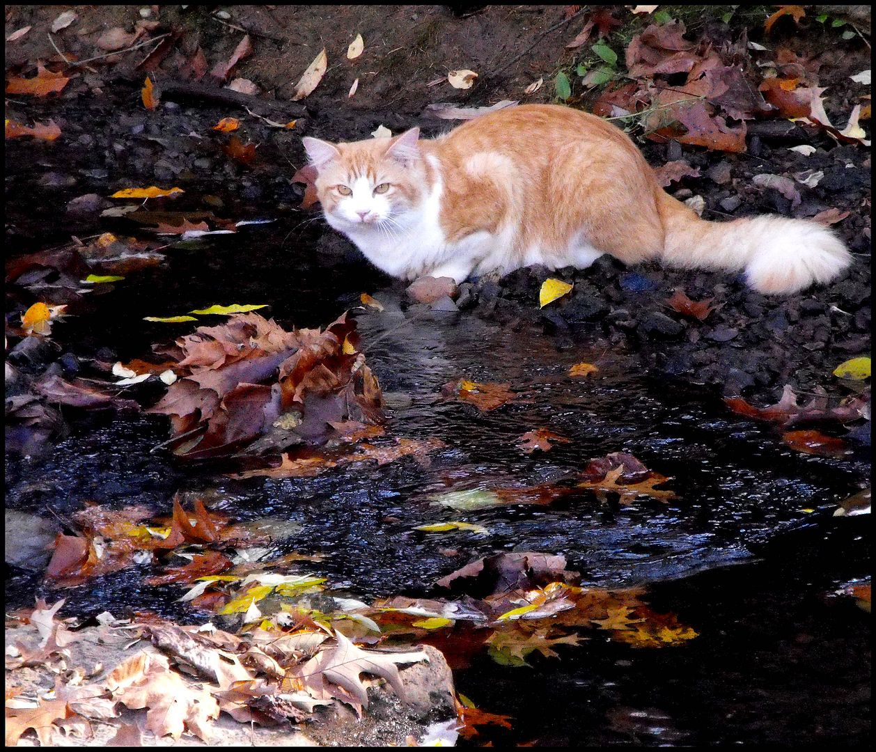 чуть позже пришли 2 собаки и кот их прогнал от своего водопоя) заснять не удалось, к сожалению - слишком быстро произошло.