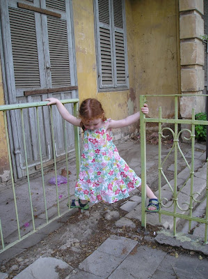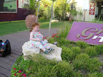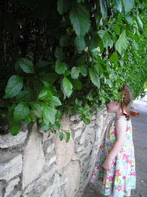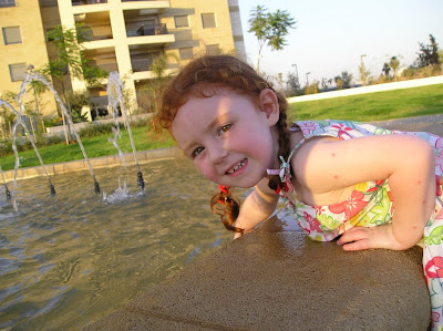 Вот, тут она играла с водой на фонтане, и уже дома на фотографии я заметил, что она лежит на мокром. А я ещё удивлялся, как она умудрилась вся намочиться. А надо было внимательнее смотреть, папочка, а не фоткать, рот разинув.