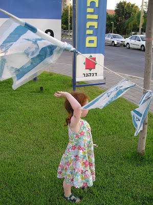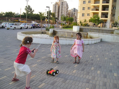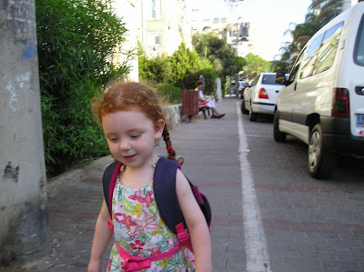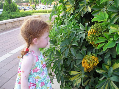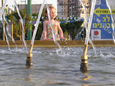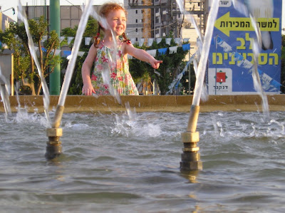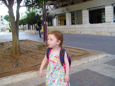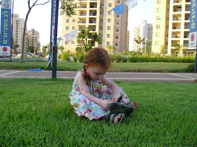 Мы вечером того же дня пошли погулять с Полиной. Пока дошли до места (парк на Эм ха-Мошавот), уже поздно стало, и мы вернулись, не дойдя до горок и качель (а не то до ночи застряли бы). Шли без коляски, долго и витиевато
