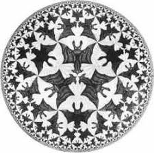 Жёлтый круг на рисунке - обязательное условие издательства (такая, знает ли, "фишка" серии). Из-за него мы и заменили одного Эшера на другого. Этакий жёлтый шар поверх ранее планировавшейся картины