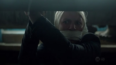Что же до психологической канвы, то я немного изменила свою прошлую концепцию "женщина видит мир через призму МДП". На самом деле, Homeland представляет собой американский ремейк "Осеннего марафона", где главным героем является не Бузыкин-Броуди, а героиня Марины Неёловой. Но как и в оригинальном фильме, от несчастного Бузыкина-Броуди все чего-то хотят. Он уже не знает, куда деваться - тут террорист, там цеэрушница, а тут еще является жена и требует, чтобы они вместе бегали по утрам. Камерная лирическая комедия умело трансформирована в шпионское фэнтези, достаточно было издательство раздуть до размеров службы национальной безопасности, а несчастную Варвару (Волчек) сделать вице-президентом США. Итак, теракт предотвращен, и, хотя Абу Назир со своей взрывчаткой и вертолетом не найден, Броуди отпущен домой. Пока он прикидывает, нормально ли уйти от жены, ведь теперь о ней и детях может позаботиться Майк, ему звонит Кэрри, радостная, как ребенок, которому обещали подарить велосипед. С Броуди снимут всякие обвинения, но он должен оставить политическую карьеру. Правда, Кэрри немного напрягается при упоминании его семьи. Ах да, досадная помеха. Но радостное чувство, что Броуди уже завтра будет лежать под ёлкой, завернутый в красивую бумажку, заставляет её забыть о том, что ей еще надо будет отравить жену и детей Броуди крысиным ядом или утопить их в пруду. Она садится в машину и включает джаззз, но тут бабах - в неё врезается другой автомомбиль. В ЦРУ в это время празднуют победу - злодеи и Ройя Хаммад арестованы, сообщение уже идет в теленовостях. Сол узнал, что Квинн работает на Дара Адала, а тот на Эстиса, а Эстис в свою очередь, оказывается, вместе с Уолденом отдал приказ разбомбить школу, в которой погиб сын Назира, и об этом тоже знает Сол. Об этом он сказал Эстису, а Эстис разозлился. Но тут прибегает Квинн с известием, что Кэрри попала в аварию и пропала. Одновременно раздается звонок на блэкберри Броуди. Ба, да это Абу Назир показывает ему по скайпу домашнее видео - Кэрри с кляпом во рту привязана к трубе. Назир самолично похитил её. Наверное, у него больше не осталось людей для таких дел и теперь ему всё приходится делать самому - следить, похищать, нападать. Я не знаю, откуда он узнал, где она живет, на какой машине и каким маршрутом ездит, и вообще кто она такая. Впрочем, после того, как она всем намазолила глаза своим "незаметным черным фургоном" и беготней в дом Броуди среди бела дня, в лицо её должна знать каждая террористическая собака. А может быть, Броуди рассказал о ней Назиру, когда они пили чай на заброшенном заводе и молились Аллаху. Поделился наболевшим - вот мол, есть одна женщина, она из ЦРУ и она чокнутая, но мне нравится, потому что с ней у нас был дикий, необузданный секс. Броуди страшно взволнован, Назир обещался убить Кэрри, если он не проникнет домой к Уолдену и не посмотрит в тайном ящичке серийный номер кардиостимулятора вице-президента. Броуди спрашивает, откуда Назир знает всё это. У меня вопросов в десять раз больше. Откуда Броуди знает, что его телефон больше не прослушивается? Откуда Назир знает, что телефон Броуди не прослушивается? И почему, черт побери, он не прослушивается?!! Почему Назиру, раз уж он знает, где лежит кардиостимулятор, нельзя было из тех же источников узнать его номер? Почему его не волнует, что Броуди позвонит в ЦРУ