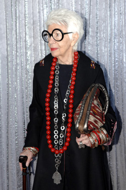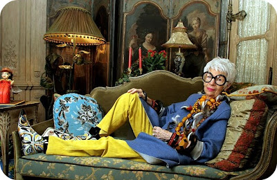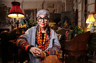 Айрис Апфель в прошлом дизайнер интерьеров, принимала участие в реновации интерьеров Белого дома при девяти президентах, начиная с Трумена, а теперь просто веселая Тортилла, модница и лицо косметики M.A.C.