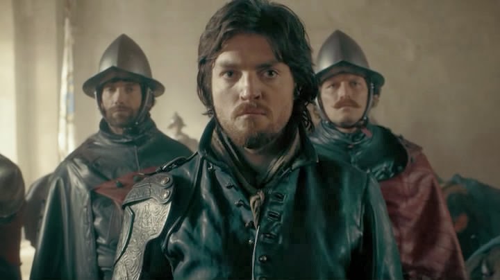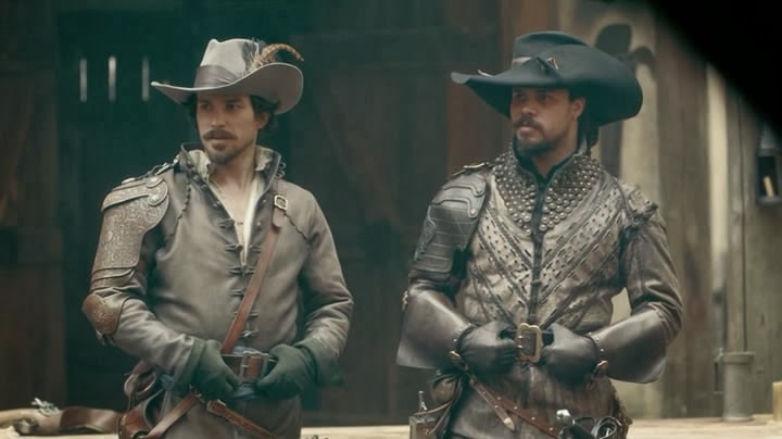 The Musketeers (UK) - 1-ая серия - рекап "Три мушкетера" входит в список чемпионов по экранизациям, наверное, так что те, кто в очередной раз берутся переснимать эту историю, вынуждены отходить от классического сюжета и иллюстративности всё дальше и дальше. А иначе кто будет по сотому разу смотреть про всю эту беготню с подвесками? Надо что-то придумывать и разводить постмодернизм. Но, в отличие от "Шерлока", в наше время действие не перенесешь уже хотя бы потому, что герои должны много драться на шпагах, а публика любит бои на разных железных палочках, это мы уже знаем благодаря фантастическим фильмам - в будущем главным оружием всё равно остается меч. Так что у нас всё равно на дворе первая половина 17-ого века. Как я говорила уже в прошлом анонсе, есть всего две концепции изображения "старинной эпохи" - нарядная, как в старых французских фильмах с Жаном Маре, и чумазая. Следуя нарядной концепции все персонажи ходят в красивых новеньких костюмах, дамы завиты и напомажены, мужчины щёлкают шпорами, "вы негодяй, месье!", "позвольте спасти вас, мадам", вив ля Франс, а за окном перманентное лето. Чумазая концепция напоминает, что дворяне выходили помочиться в коридоры Лувра, грабили и насиловали по мере возможности, всюду была антисанитария, слякоть и грязь, а в природе существуют еще зима и осень. Британцы решили снимать чумазо, но до определнных пределов - грязи хватает, но костюмы дорогие и рукодельные. Зато все ходят в кожаных штанах. Никаких вам синих плащей с крестом, все выглядят как проторокеры, даже кардинал Ришелье. При чумазой концепции мушкетеры должны бы быть носаты и кривозубы, но тут британцам духу всё же не хватило, и д'Артаньяна играет молодой Гойко Митич: Но Атос, в недавнем прошлом, видимо, байкер, в меру уродлив: А Портос вообще мавр (наверное, это дань Александру Дюма, он был негритянских кровей) в бандане: Арамис и Портос Констанция Бонасье деловая женщина, быстро вписавшаяся в мушкетерскую тусовку в качестве товарища по оружию, и довольно ловко стреляет из пистолета: Вообще в сериале на удивление много стреляют, хотя и на шпагах тоже бьются. Обычно в мушектерских фильмах огнестрельное оружие задействовано мало, чтобы было побольше шпаг и кинжалов, а тут палят без устали, более того, в одной и сцен убиенный отлетел от выстрела почти на метр, как у Тарантино. Надо что-нибудь сказать о сюжете? Ну хорошо. Д'Артаньян с отцом направляется в Париж, по дороге на постоялом дворе на них нападает шайка грабителей, главарь которых представляется Атосом из мушкетеров его величества и убивает отца д"Артаньяна. Тем временем король отправил гонцов из людей де Тревиля к королю Испании с секретным письмом, гонцы пропали, письмо соответственно тоже. Де Тревиль просит Атоса, Портоса и Арамиса помочь разыскать посланцев. Но тут Атоса арестовывают за грабеж и убийство, потому что шайка много кого обчистила и убила, и главный злодей, хоть и был замотан платком, всегда называл своё имя. Д'Артаньян уже успел подвернуться под руку мушкетерам и они знают, что он был свидетелем нападения. Поэтому они берут его в охапку и отправляются расследовать дело. Выясняется, что гонцы были убиты, их формой завладели злоумыленники, которые намеренно выдавали себя за мушкетеров, особенно напирая, что один из них Атос, потому что Миледи таким образом хотела подвести бывшего мужа (ил