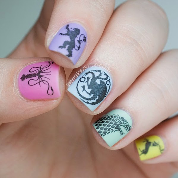Маникюр и описание - The Nailasaurus, деколи куплены на Etsy, но в этом магазинчике их сейчас нет.