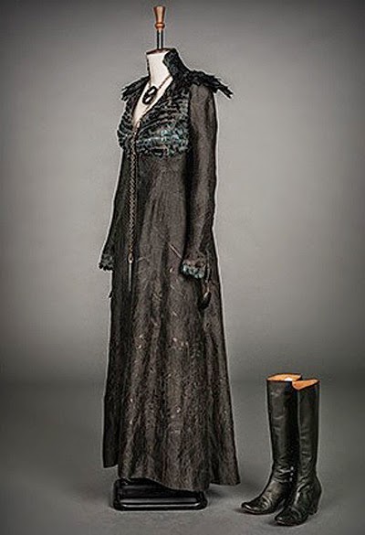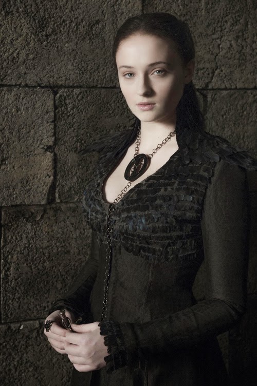 Новое платье Сансы Санса теперь черный ворон Судьбы. Я удивлена, что у неё сапоги на каблуках - она и так очень высокая, обычно в таких случаях стараются это как-то поправить, чтобы высокие актрисы не были заметно выше своих партнеров: via Fashionably Geek |