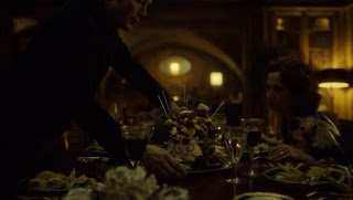Hannibal - 3-я серия (3) - рекап А вот и Джек Крофорд. Он тоже выжил. Может, и Алана уцелела? Чувствую, маньяка недели у нас в этом сезоне не будет, за исключением ожидаемого появления Зубного Фея. Местом действия остается Италия, кухня тоже соответственно итальянская, и мне по прежнему жаль, что экзотические кулинарные композиции остались в японском сезоне. Зато у нас есть японка. Если Ганнибал всё понимает про Уилла, то Уилл продолжает изучать своего учителя, как художник художника. Для этого он отправляется туда, куда самому Лектеру путь заказан по личным причинам, - в Аукштайтию в Литве. Там родился будущий непризнанный гений и там же он получил жизненный толчок, послуживший отправной точкой для его дальнейшего творчества. Уилл уже знает, что произошло в родовом имении Лектеров, хотя сценаристам пришлось, как я понимаю, изрядно переписать историю, что бы свести концы с концами. В нынешней интерпретации Ганнибал никак не мог пережить Вторую мировую войну, так что смерть сестры должна была прийтись на советское время. В заброшенном замке Уилл обнаруживает японскую девушку с ружьем, которая стреляет уток, содержит в подвале сумасшедшего и очень вычурно выражается. Уж на что герои сериала ни слова в простоте не скажут, но тут японская девица изъясняется так, что хоть хайку пиши. Заросший узник замка Ив и есть убийца Миши Лектер (господи, какие воображаемые родители могли назвать детей Миша и Ганнибал?), он же её и съел. За что Ганниал его и запер, поручив своей очередной ученице следить за пленником и поддерживать его в относительно работоспособном состоянии. Впрочем, действительно ли этот человек убил Мишу, под большим сомнением, потому что это известно только со слов самого Ганнибала. Если прошлые два сезона Лектер разбирал Уилла, то теперь Уилл собирает Лектера из фрагментов. Для него, да и для самого доктора, сознание Ганнибала есть череда комнат, замкнутых пространств, помещенных в некую крупную архитектурную форму, тот самый дворец памяти. Сознание же самого Уилла - это лес, где живет Чудовище. В Литве два этих мира пересекаются - заброшенный замок в лесу. Внутренний диалог пациента и психоаналитика происходит то в лесу, то в темной комнате. Вероятно, таким образом Уилл должен вывести Лектера из тёмных лабиринтов на свет божий. Пока Грэм гуляет между деревьев, доктор пустил на горячее профессора Сольято. Он давно уже не довольствуется созданием визуальных и кулинарных инсталляций. Главное направление в его творчестве - это создание убийц. Он, как скульптор, отсекает всё лишнее от грубой глыбы. В этот раз он подталкивает к убийству Беделию, и хотя формально она не убивала, технически, по замечанию Лектера, Сольято убила именно она. Внутренности Сольято, как и положено, были скормлены европейским интеллектуалам. Лектер предпочитает не только добротное мясо "креативного класса", но и искушенную аудиторию. Беделия же питается исключительно устрицами. И это понятно - в них ничего подложить нельзя. В Литве же японская девица оставлена в качестве заготовки для очередного произведения. Уилл считает, что Лектер подталкивает её к тому, чтобы она убила своего узника. Надо ли напоминать, что точно так же доктор делал убийцу из Уилла. В этот раз план Лектера был воплощен в жизнь самим Грэмом. Безумец был таки убит. И послужил материалом для инсталляци