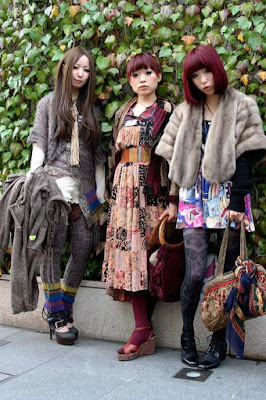 Бохо против долли На самом деле у японцев есть более богемно-декоративный стиль, который ближе к бохо. Это долли или Dolly Kei. Долли отпочковались от мори, но взяли за основу антикварных кукол и европейские сказки, желательно помрачней. Как пишут разные источники, долли - это японское переосмысление европейской культуры от средневековья до викторианской эпохи. Что-то между братьями Гримм и Эдгаром По. А ведь это просто студентки и школьницы, миксующие свои луки из готовых вещей. На их фоне "молодые российские дизайнеры" кажутся зажатыми, скучными и совершенно лишенными фантазии. А наши блоги о стиле и моде вообще сборище скучных людей, которые не могут решить, надевать ли желтую футболку под зеленую юбку, или того занудней - повязать шарфик или ну его. Вокруг субкультуры тут же выросли магазины вот такой одежды. Чтобы юная дева в идеале могла выглядеть так: |