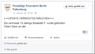 Про девочку из Берлина Есть уже обойма расследований (медуза, медиум), полиция Берлина изрядно рассержена и грозит судами по разным статьям от клеветы до разжигания розни. Первый пункт - была ли девочка? Да, была и есть, её эккаунты легко найти в соцсетях, вот, например, один из старых. Обычная девочка-подросток, у которой на уме любовь и подружки. И еще она очень патриотично настроена к свой бывшей родине. Пропадала ли девочка? Да, 12 января в сети постили объявления о розыске пропавшей 11-ого января Елизабет Ф. 13 января пожарная служба сообщает на странице в ФБ, что девочка нашлась, а полицейский представитель в комментах отвечает, что похищения не было. 14 января на сайте антимигрантской группы появилась информация об изнасиловании, правда, там не было сказано, что девочка была русской, но зато сказано, что преступники выпустили её, она позвонила в пожарную службу и та доставила её домой. 16 января появляется сообщение об изнасиловании девочки на "Сайте советских немцев", представляющем некий "Конвент российских немцев". В тот же день выходит сюжет Первого канала, в котором некая "тётя Марина" сообщает подробности, жалуется на бездействие властей и прессы. Дальнейшее вы знаете. Это уже не так интересно. Но. Несмотря на то, что эккаунты родных Лизы Ф. в соцсетях многие из расследователей видели, мало кто обратил внимание на содержание хотя бы эккаунта в Одноклассниках её мамы, Светланы. Там две основных темы - борьба с мигрантами в Германии и объявления о пропавших детях. Бесконечные репосты объявлений. Иногда они разбавлены объявами о розыске педофилов и маньяков, этих уже немного, но пара-тройка имеется. Но знаете, чего там нет? Объявления о пропаже собственной дочери. Нет их ни у дяди Тимофея (реальный совершенно дядя), дававшего комментарии прессе. И вот тут богатая пища для психологов. |