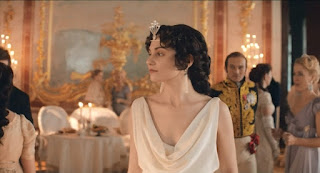 War And Peace Не хотела смотреть, но столько раз спросили, что уже из любопытства глянула три серии. Ну и что? Клюква, конечно. Но не так, чтобы уж совсем ужас-ужас-ужас. В плюс можно записать натурные съемки и человеческих персонажей. Англичане, слава богу, играют не "образ русского дворянства в романе Льва Николаевича Толстого "Война и мир", а живых людей с человеческими эмоциями. И, в отличие от отечественной геронтологической традиции, основные персонажи соответствуют своему возрасту. Потому что сорокалетние Пьер и Элен - это конечно, было слегка курьезно. Впрочем, рекорд побила пятидесятилетняя Анна Каренина у Соловьева. Сторожилам МХАТа о таком и не мечталось, наверное. Очень удачный Пол Дэно в роли Пьера. Но и, пожалуй, всё, больше отметить некого. Остальные просто похожи на людей и этого вполне достаточно. Кроме чудовищной Элен. В жирный минус работа художников по костюмам и это, по-моему, отметили все. Я бы еще и отдельно выделила прически, которые не просто не соответсвуют историческому периоду, но плохи сами по себе. Залитый лаком до состояния окаменения парик Наташи Ростовой резал глаз всю дорогу. Почему она вообще в парике? Что там случилось с волосами Лили Джеймс? При старательно расчесанной и приклеенной к голове челке сзади "пляжные волны". Нет, ну правда, Наташа Ростова хрестоматийный символ искренности и простоты, и этот парик ему достоверности не добавляет. С остальными женщинами так же - слишком современные и вычурные укладки, странные, не соответсвующие эпохе платья, да еще и плохо сшитые. Как уже отмечали обозреватели - грудь у всех не на месте. Украшения не к месту и не из той эпохи. На девочке Наташе бижутерия из Аксессуарайза? Для драгоценностей она ж вроде мала еще, да и повода нет их надевать. Да и выглядят они тоже сомнительно. И беда не в том, что "пуговицы не те", а в том, что вся концепция заведомо с изрядной долей условности и опиралась не на исторический костюм, а на фантазии художника. Но даже при этом допущении Элен выбивается из общего ряда - она явилась откуда-то из нулевых 20-ого века. Наглая, развязная, полуодетая девица. С постоянными странными украшениями на лбу. Вот ничего себе незамужняя княжна: На фоне общей старательности, а англичане старались куда больше, чем, например, создатели нашего недавнего "Шерлока Холмса", где на заднем плане торчали православные церкви и асфальт, такие серьезные огрехи, раздражают, как звук металла по стеклу. Несколько вольное отношение к сюжету и секс для оживляжа меня смущает гораздо меньше. Честно говоря, я даже рада, что бриты позволили себе некоторые вольности, уж больно нас утомила школьная программа с её железобетонными "правильными" трактовками. Но увы, то, что получилось в "Карениной" Райта или в недавней экранизации Булгакова, совершенно не получилось здесь. "Каренина" и "Записки юного врача" - это были не экранизации, а впечатления от русской литературы. Там можно было включить условность с самого начала, задать "сторонний взгляд". И этот приём сработал в обоих случаях. Сейчас англичане пустились в игры с большим иллюстративным стилем и проиграли. Впрочем, предыдущая совместная экранизация "Войны и мира" 2007-ого года была еще хуже, на мой взгляд. Она была совсем матрёшечно-балалаечная. Хотя и эта не далеко ушла. И давайте закроем эту тему. Сериал неудачный и совершенно проходной. 
