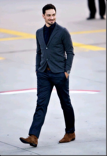 Еще больше футболистов Футбольная мода оказалась увлекательной темой. Поэтому продолжим. Женской части галактеко это приятно смотреть, а мужской, надеюсь, полезно. Действительно, у футобольных клубов есть жесткий дресс-код и футболисты не могут на публике ходить в чем попало, особенно на мероприятиях, связанных с деятельностью клуба или лиги. Пусть они по полю бегают грязные, но вне поля они образцовые джентльмены (хотя большинство из них выходцы из низов). И потом это же бизнес, это бегут и матерятся миллионы евро. Поэтому пиар-службы жестко контролируют имидж. Короче говоря, это те, кто сидят на трибуне, могут выглядеть, как говно, футбольные люди себе такого позволить не могут. Итак, сборная Нидерландов на ЧМ-2014 в кэжуал: Сборная Германии в Хьюго Босс, в костюмах вы её уже видели, а вот более повседневный лук: Сборная Италии в Дольче и Габбана: Сборная Испании - Жерар Пике: И немного тренеров. Конечно, Гвардиола тут вне конкуренции, но нельзя обойти вниманием Жозе Мауринью: Кэжуал: Роберто Манчини, итальянский стиль, конечно, читается сразу: |
