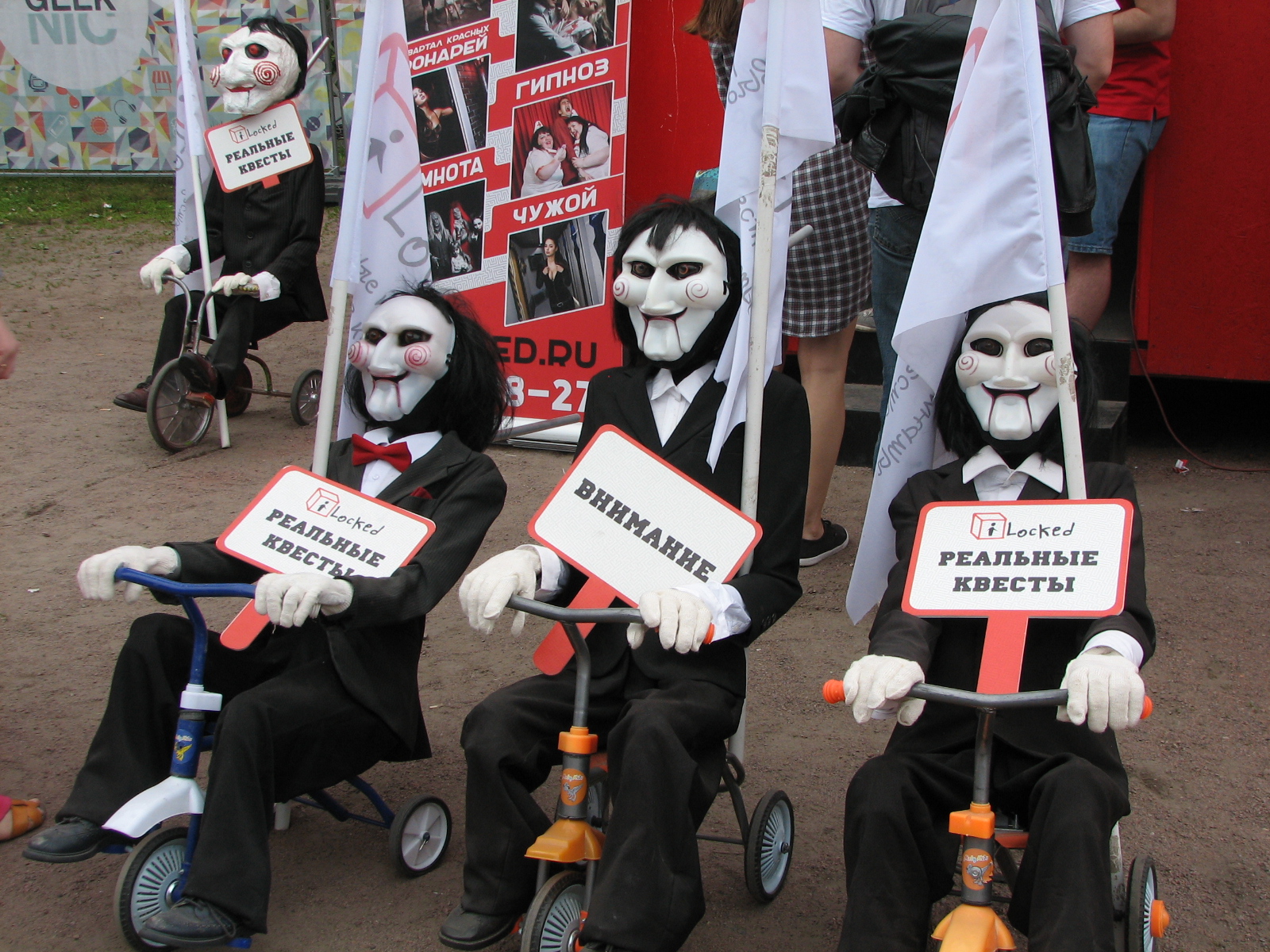 Гик пикник 2016 - ч.3 Было ли что-нибудь гиковское, кроме Хайнемана? Чего-то было. Три косплеера: Кое-какие роботы и приблуды: В одной из палаток дети собирали каких-то роботов - им показывали схемы и узлы, а они что-то делали в своих ноутах. Была будка "Реальных квестов": И целый грузовик их конкурентов: Очередь в палатку Дикавери и еще в какие-то павильоны виртуальной реальности. Катание на сегвеях и гироскутерах от МТС. Но в основном еда-еда-еда. Вобщем, хипстеры настойчиво приватизируют чужую тему, а настоящее гиковское сборище - Chaos Constractions - приходит в упадок. Я была в прошлом году и даже не стала писать: всё прошло очень скромно, помещение маленькое, народу мало, выставка всё та же, билет тоже не дешевый. |