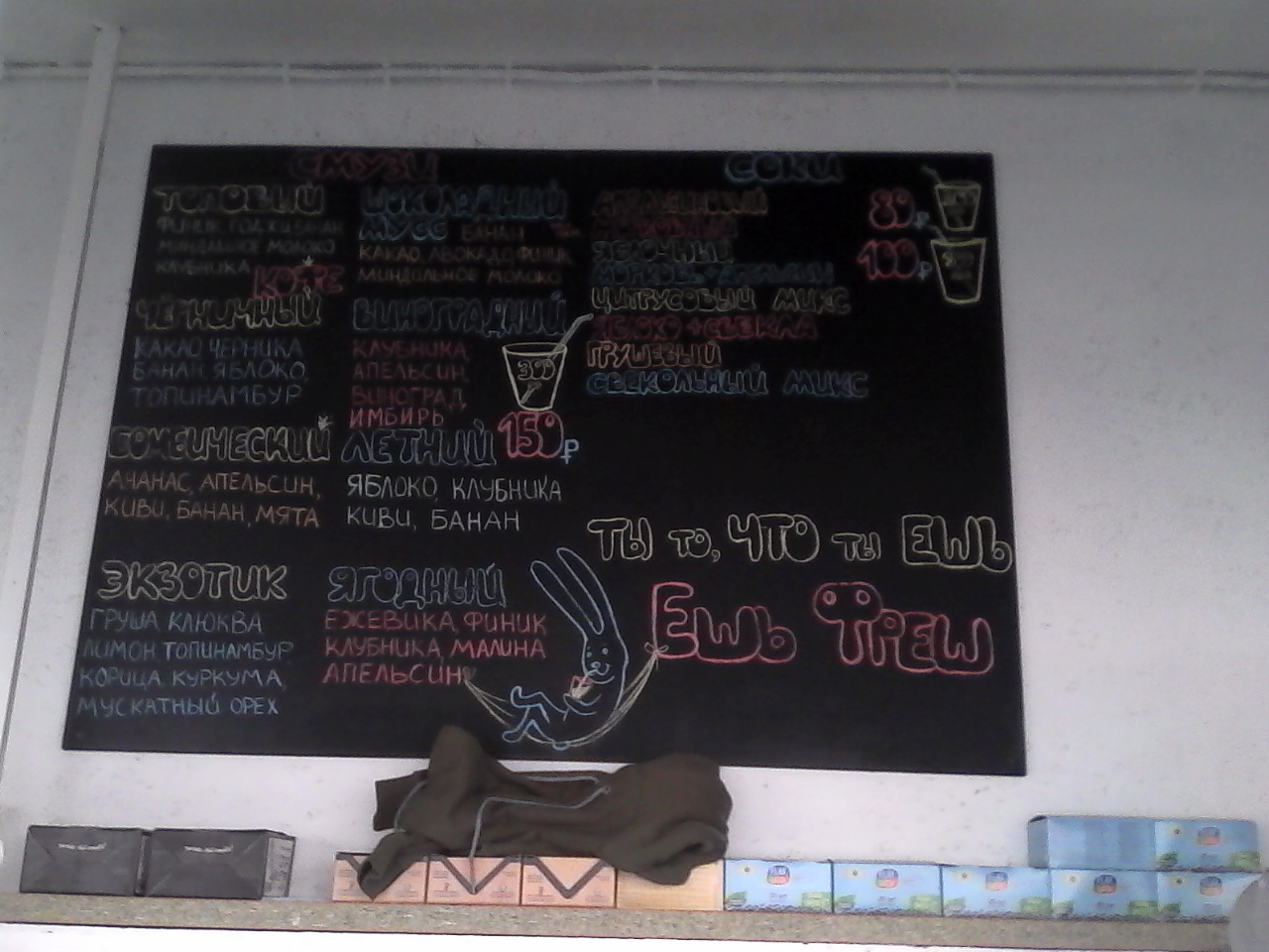 И они его достроили! Я же говорила, сто пудов хипстеры, это было понятно по фанере и розовым шортам. Смузячечная (сорри, против света пришлось снимать):