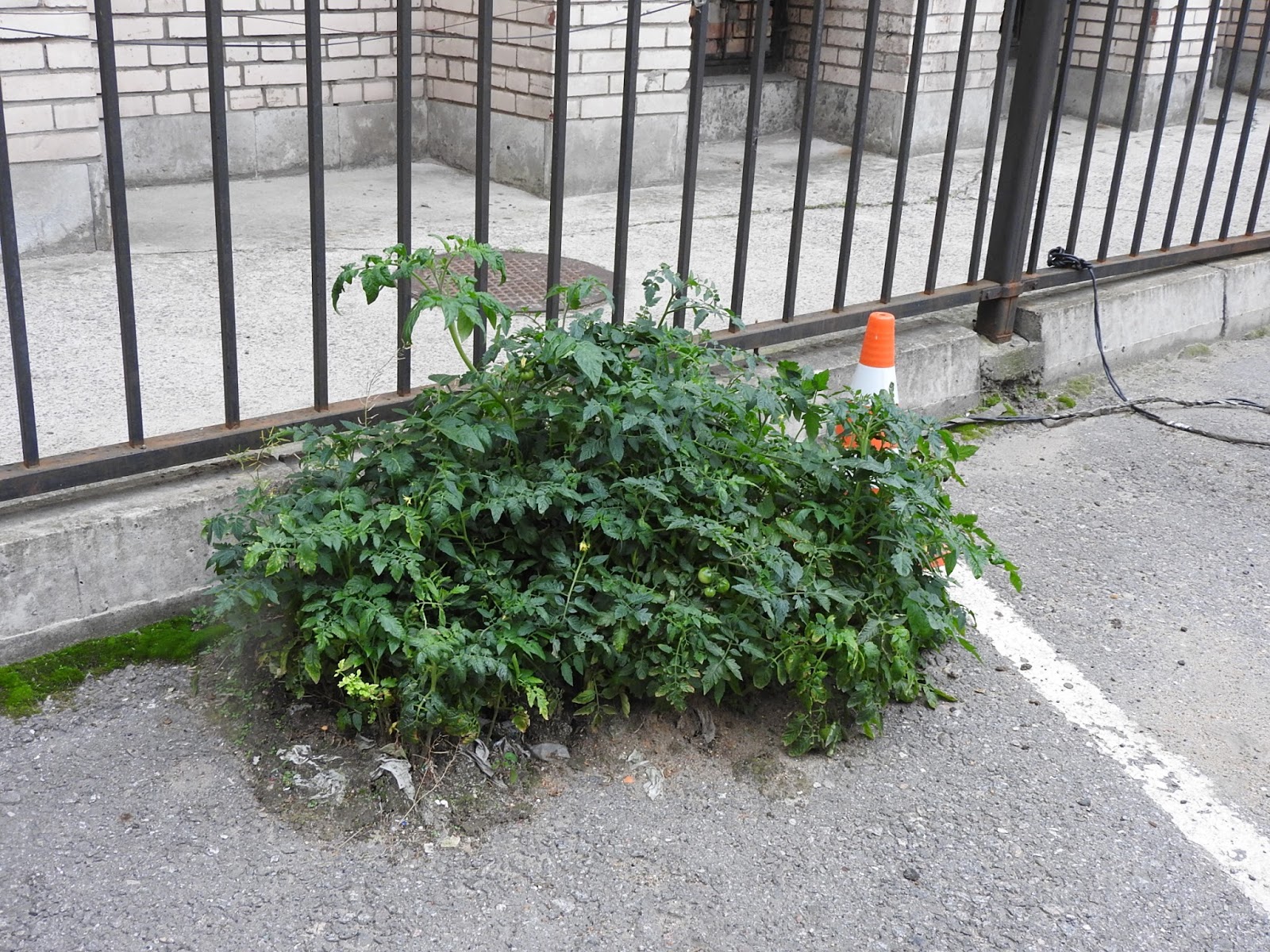 Всё-таки в этом городе какая-то тайная страсть к выращиванию помидоров. Вот это на стоянке за бизнес-центром, причем торчит прямо из асфальта. А я в это время не могу в горшке вырастить банальную петрушку: