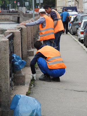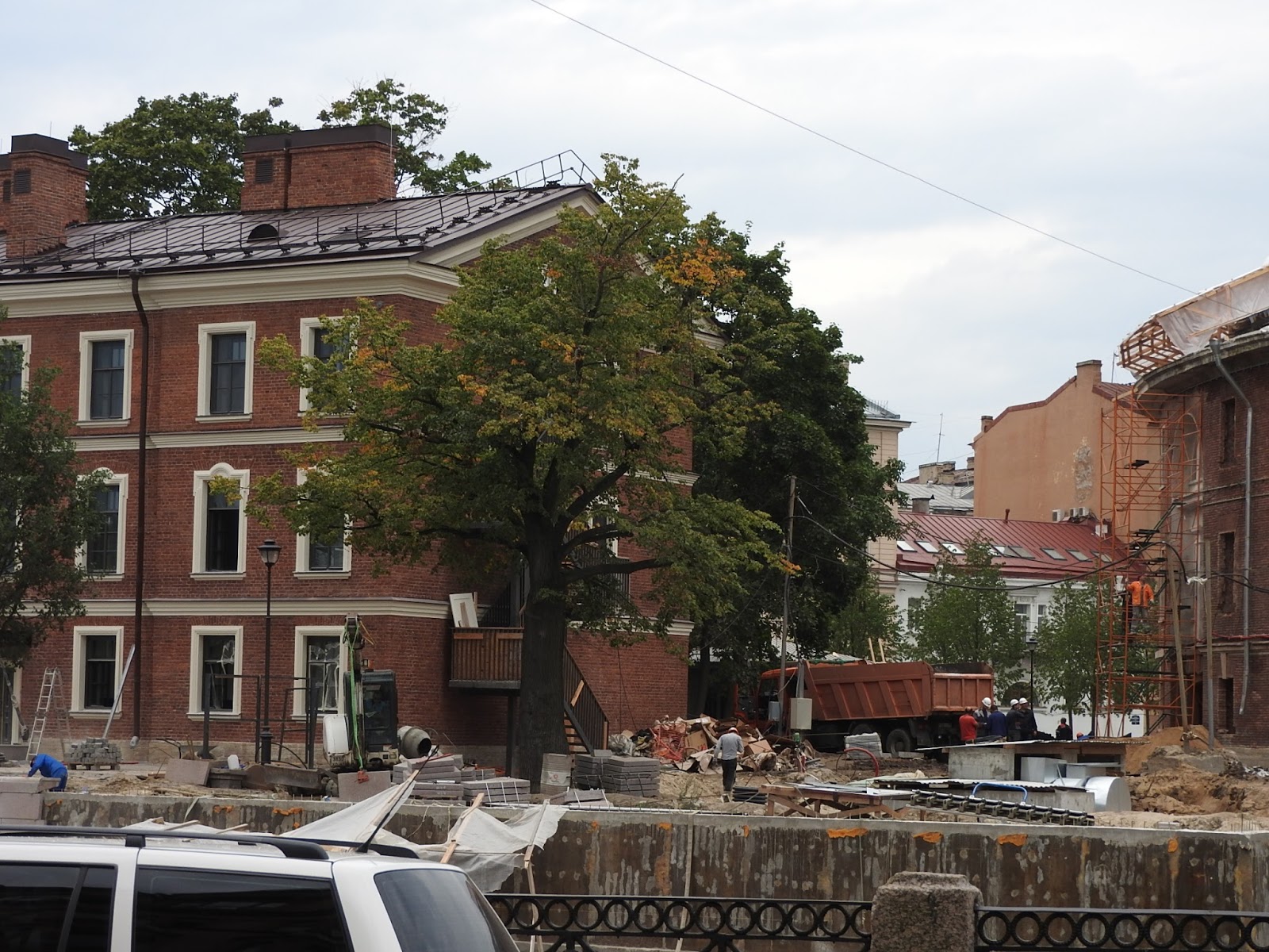 Гнездо богатых хипстеров А в это время нашу хипстерятню ремонтируют ускоренными темпами. Нагнали техники и таджиков столько, что можно уже Зенит-Арену достроить. Вывеску поставили А с не парадной стороны конь не валялся: Зато с фасада газон раскатали, взрослые деревья воткнули. Дворников заставляют выдергивать сорняки вдоль набережной. Съехались важные хипстеры (по центру кто-то знакомый). Пока с фасаду красота, с тыла кыгыбычно. В канале плавает грустный Дмитрий Евгеньевич: Я так понимаю, ожидают Абрамовича с инспекцией. 27-го открытие, 28-го детский день. Но что-то цивилизации пока не видно. Успеют ли замести мусор под ковер до субботы, интересно. |