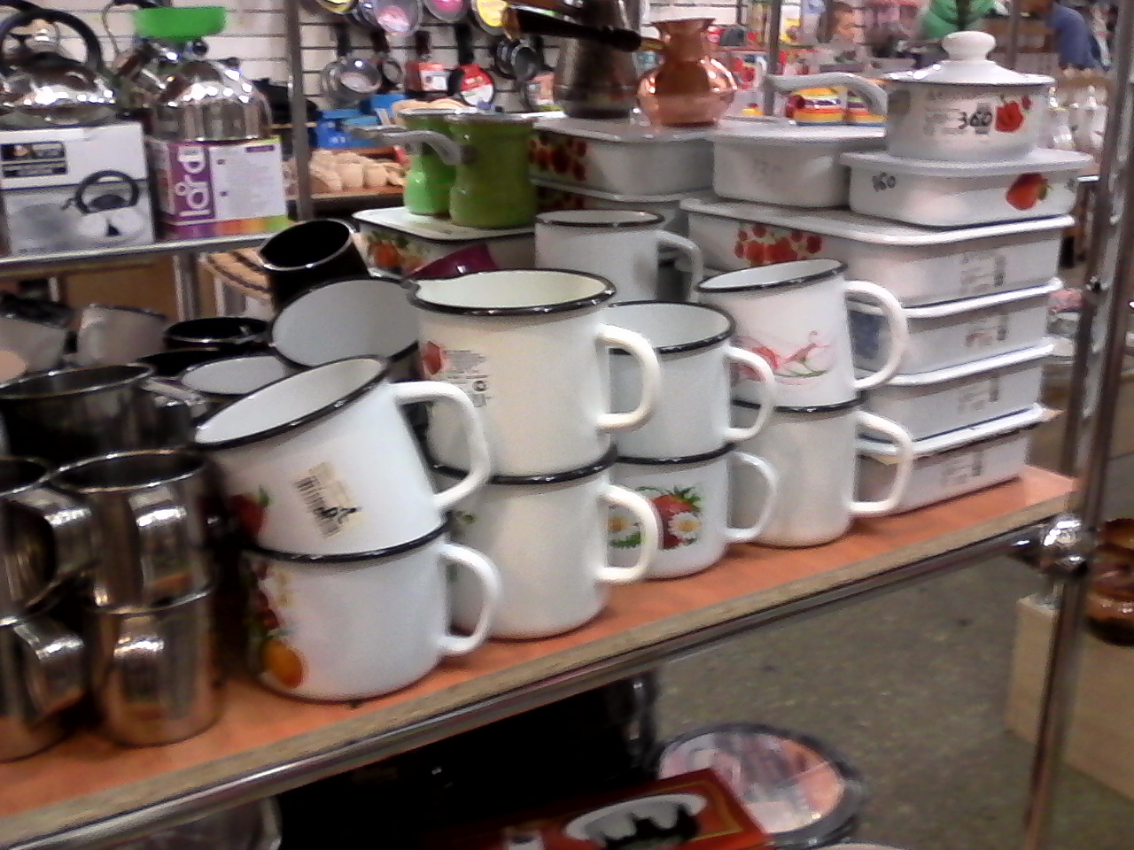 А еще я вот эти хозлавки очень уважаю, там просто красиво, сельский шик, олдскульные эмалированные кружки и миски:
