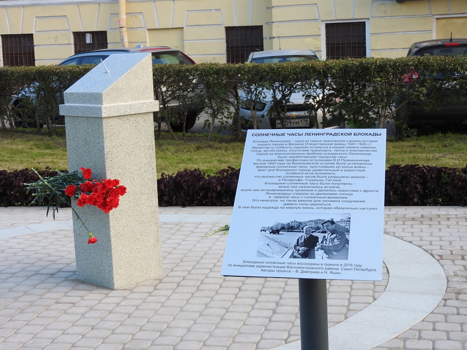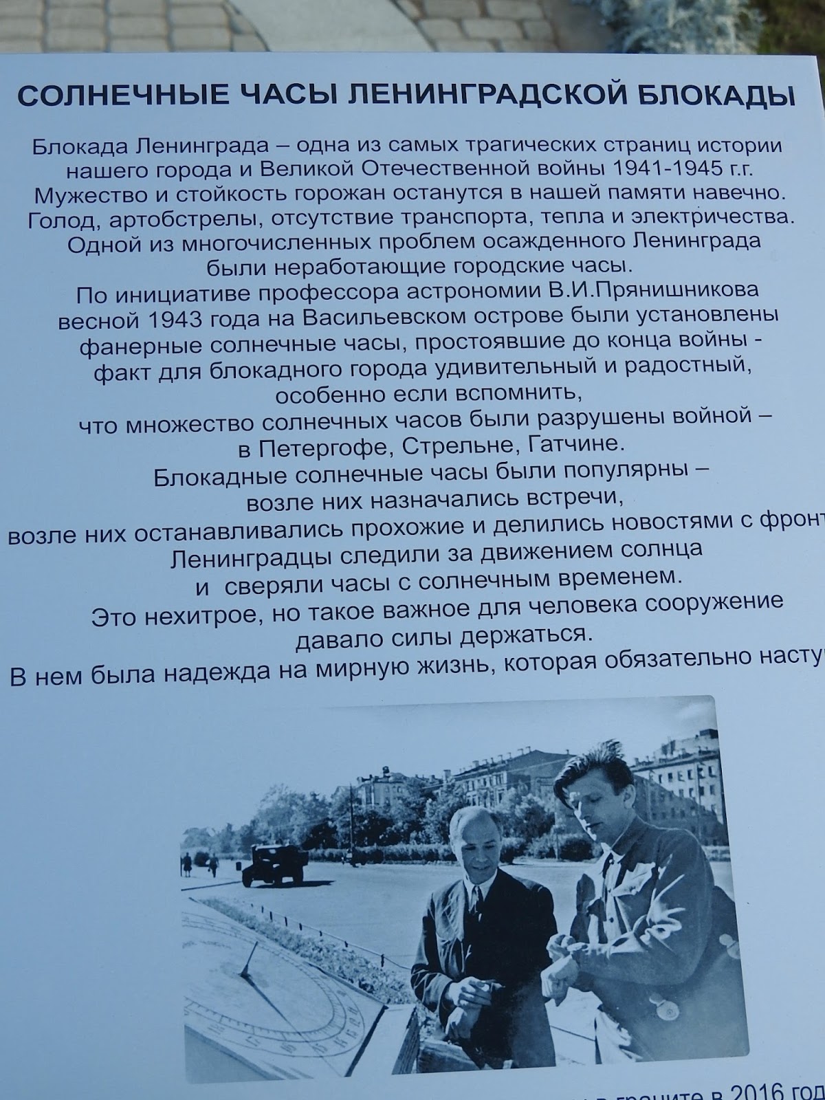 У нас тут любят маленькие памятники. Это вот новый в память о блокаде - памятник солнечным часам. Он эстетически не особо выразительный, но к нему прилагается очень человечный текст.