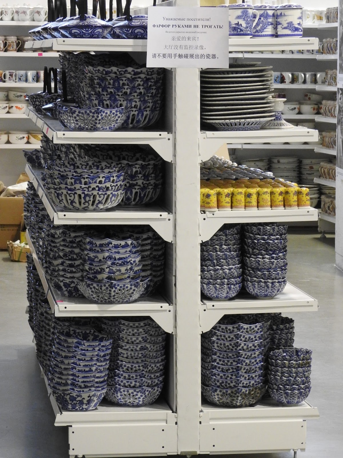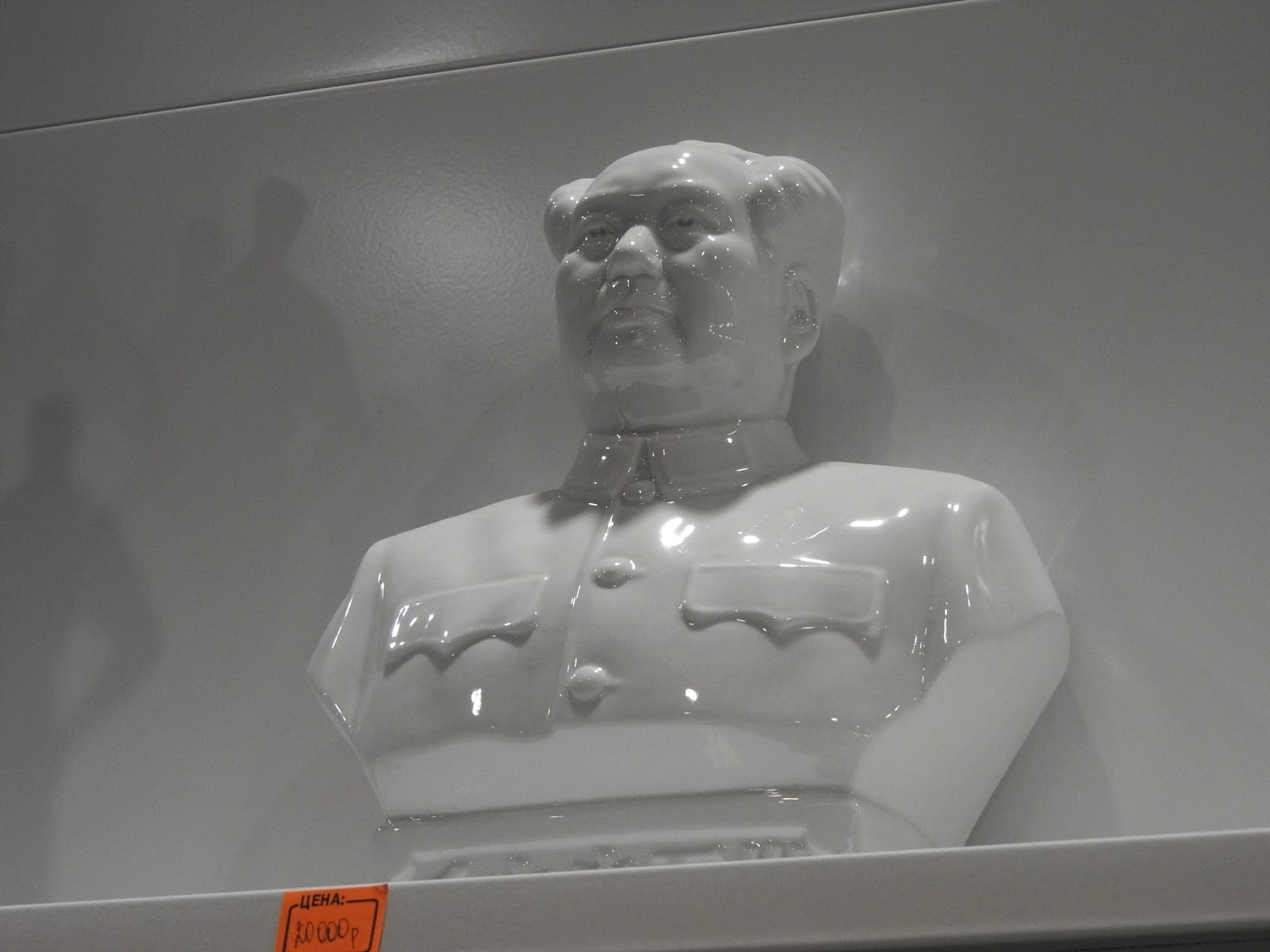 В городе Наконец-то открылся многострадальный ресторан "Цинь". Это в Ленэкспо, где должно было быть 6 тыщ квадратных метров китайской еды. Заглянула туда случайно, а у них как раз первый день работы. Поэтому две русских хостесши тут же строго сообщили мне авансом, что кормить меня не будут, у них сегодня для важных лиц. Зашкаливающее дружелюбие, никаких там "Ждем вас завтра". А вот я недалеко ела в китайской столовой, где все по-честному - в окне иероглифы, вечный Новый Год (оказывается, это так положено по канону - на удачу, поэтому всё в снежинках и санта-клаусах) и по-русски никто не говорит. Тем не менее, стоило мне ткнуть пальцем в сторону буфета (190 рублей полный комплект нехитрой еды), как китайская девушка уже несет мне стакан чаю - настоящей принцессы Нури из пакетика! Сама мне всю еду положила, как слабоумному гайдзину, чек со сдачей принесла и ушла слушать китайские песни. Еда так себе, у нас в "Хаочи" бизнес-ланч получше будет, там чай зеленый и пряник дают, но вот это гостеприимство и ненавязчивость. В Ленэкспо я еще обзрела экспозицию китайской посуды. Всё это продается, но нет никого, кто хотел бы тебе что-нибудь продать. Бродила в полном одиночестве среди табличек "Фарфор руками не трогать". Кич во всех его проявлениях. Но зато с истинно китайским размахом: Но можно купить и красивые вещи. Портрет Дэн Сяо Пина: А это, может быть даже, председатель Мао. Он не подписан: Хорошая вещь. |