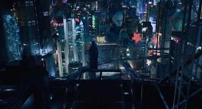 Ghost in the Shell (2017) - фильм Хаха! Плохо буквально всьооо! Надо продолжать? Не? Это просто плохой фильм, даже если забыть о первоисточнике и смотреть с чистого листа. Но проблема в том, что забыть вам намеренно не дадут, потому что создатели фильма всю дорогу приставляют губы Никанора Ивановича к носу Ивана Кузьмича: берут дословно сцену из канонического "Призрака" и пришивают её к своему сюжету. Сцена клеится плохо и по смыслу, и визуально, но создатели не унывают и густо замазывают шов мазилкой с блёстками - ненавистной зрелищностью, которая в этом случае напоминает американский детский коктейль, где и мороженное, и пирожное, и бенгальский огонь, и посыпано звездочками, а потом еще воткнут сникерс, Барби и зонтик. Главное, всего и побольше. Чтобы было понятно, как это выглядит: если помните, в оригинале была важная сцена, когда Майор долго всплывает из толщи воды в полной темноте в заливе. В нынешнем фильме в ровно такой же сцене есть и живописные развалины, и водоросли, и большие расписные медузы ("мы похожи на арбузы"), и яркие разноцветные огни на поверхности. Ну прямо Большой Барьерный риф, есть на что посмотреть, кругом "перламутровые пуговицы". Диалог, который следует за этим в первоисточнике, здесь представляет собой какую-то пафосную чепуху, не стоящую внимания. Сцена из аниме 1995 г. Всё избыточно: город, напичканный 3Д финтифлюшками аж в глазах рябит, что не мешает внезапно переключать эту расписную красоту на стилистику оригинала с монотонными облезлыми фасадами, количество взрывов и беспорядочной стрельбы, и, конечно, киборги. Тут и на словах десять раз скажут, что у всех вставные части тела, причем, ни к селу, ни к городу, и сто раз покажут. У кого рука, у кого нога, у кого челюсть, всё на показ. Естественно, этим улучшенцам приходится ходить без одежды, иначе их блестящие механизмы не будут видны. Если уж нам доложили, что Майор - результат высоких технологий, то нам еще пол фильма будут талдычить, что она одна в своем роде, что это так поразительно, и что она прекрасна. И всё это под назойливую оркестровую музыку. А вы думали, там будет знакомая тема Кендзи Каваи? Будет, та самая, но только на финальных титрах, а остальное время грохочет обычный голливудский саундтрек, который хоть куда приставь - можно к "Кинг Конгу", а можно к "Дню независимости". Что касается сюжета, то при том, что этот составной кадавр собран из обрывков фильма 1995 года и телеверсий, главная идея претерпела изменения. Видимо, таким образом сценаристы попытались проявить оригинальность - у них было так, а мы сделаем эдак. В каноническом "Призраке", как и в его предшественнике, в "Блейдраннере", речь шла об осознании и принятии своего "я" искусственным, или частично искусственным существом. Кто я - сосуд ли я, в котором пустота, или огонь, мерцающий в сосуде. У Ридли Скотта репликанты в конце концов ощущали себя людьми, у Осии Майор сливалась с кибер-разумом в единое, новое создание, живое, но не человеческое. Тут у нас всё простенько и тупенько: героиня узнает, что её и без того скудные воспоминания ненастоящие, открывает своё бунтарское прошлое (возражала против технологий с помощью бумажных листовок в заброшенном сарае) и воссоединяется с мамой. Теперь она человек, потому что рождена от мамы, а не из бочки с белой жидкостью. И котик её признал сразу! А кто еще может безошибочно отличит