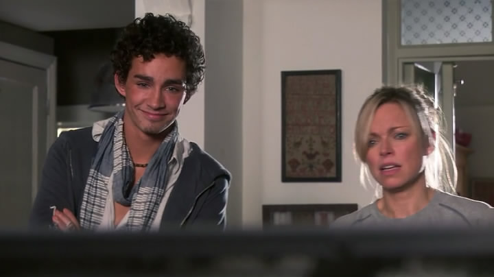 А в это время... Аль-Каида пока не забеспокоилась, но резко заволновалась жена Броуди, которая только вчера вечером выставила его из дома, а с утра уже места себе не находит - где муж? О женщины, непостоянство ваше имя. Помошник конгрессмена по наущению ЦРУ врет Джессике, что у мужа грипп. Внезапный грипп случился с ним за вечер. А Джессика наварила