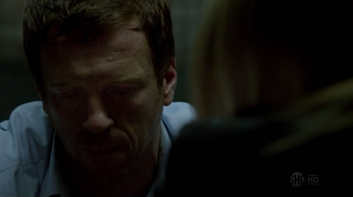 А в это время... За Броуди берется Кэрри. Она играет в хорошего следователя и строит сценарий своего допроса на том, что правда освобождает. Но она так же не говорит всей правды, как не говорит её и Броуди - отключив видео камеры, Кэрри оставляет включенной аудиопрослушку.