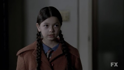 Серия называется “The Origins Of Monstrosity” - "Происхождение чудовищ". В общих чертах мы уже знаем, как сестра Джуд стала тем, кем стала. Настала очередь остальных - доктор Арден, сестра Мэри и, конечно, Тредсон. Его превращение в монстра рифмуется с историей новой пациентки - девочки Дженни Рейнолдс. Маленькие девочки с косичками и серьезным лицом опасны! Я не знаю, на кого больше похожа Дженни - на Венсдей Аддамс или Джодель Ферленд, отвечавшую за всех зловещих девочек в кино. Сюжет же отсылает к фильму 56-ого года "