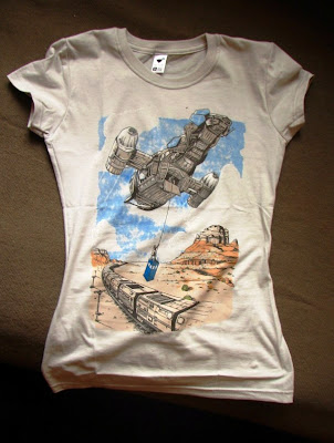 TeeFury - это такой сервис, где продают гиковские футболки с конкретным рисунком один день. Печатают ровно столько, сколько было заказано, и больше такая футболка не продается никогда, за исключением специальных акций, по-моему. Футболка стоит $11-$13, плюс доставка $4. Они пишут, что шлют UPS-ом, но это не совсем UPS, а дешевый дочерний сервис UPS Mail Innovations, поэтому трекинг-номера нет и пакет приходит обычной почтой. Мой шел три недели, так что я успела немножко поклевать поддержке мозг.