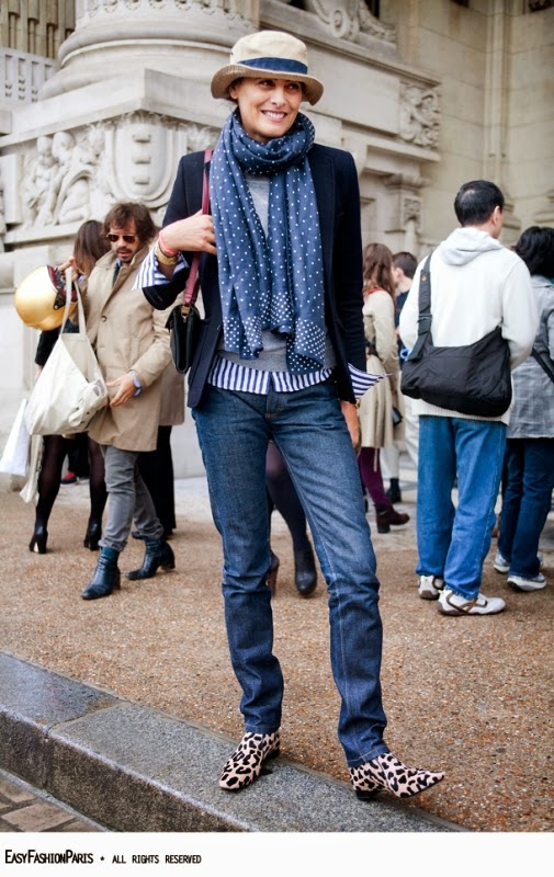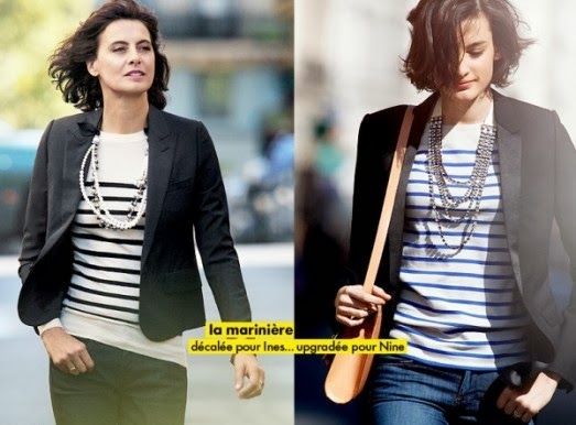 Инес де ла Фрессанж много раз перечисляла необходимые вещи, которые надо иметь, чтоы выглядеть как она, да они и так очевидны: укороченные брюки, блейзер или любой тонкий, желательно приталенный пиджачок, navy-sweater - в данном случае речь идет о свитере в полоску, о тельняшке, кожаную куртку, туфли без каблука и аксессуары. И джинсы, которые не надо стирать, а только отдавать в сухую чистку, потому что они теряют цвет и форму.