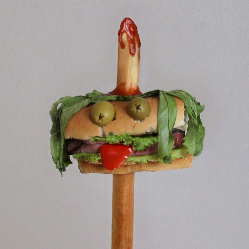 Еще одно симпатичное блюдо на Хэллоуин. Можно использовать банальный гамбургер из МакДона в качестве заготовки. На самом деле этот бургер посвящен Неду Старку, как оказалось.