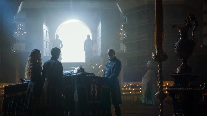 Смерть Джоффри должна была бы привести к какой-то катастрофе или хотя бы беспорядку, но нет, в Гавани относительно спокойно. Тайвин сразу же взялся за обучение нового короля - Томмена, причем и за его половое воспитание тоже. Но всё же первый совет, который он дал Томмену, - слушай своих советников, слушай дедушку, он плохого не подскажет. Проще говоря, Тайвин становится истинным правителем Вестероса. Томмен - это вам не Джоффри, он тихий и послушный мальчик.