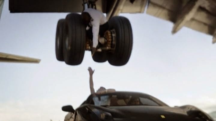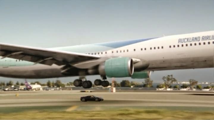 И вот Уолтер садится в ферарри, который очень кстати нашелся на стоянке, и они с Пейдж едут прямо под самолетом, а второй пилот им кабель через дырку тянет.