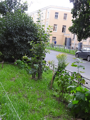 Еще садовое Продолжим экскурсию по тайному садоводству нашего города. Газоны на маленьких улицах - главное поле для ландшафтных экспериментов. И ведь у людей действительно то, что называется, зеленые пальцы, на такой земле что-то вырастить. Кто говорил про подсолнухи в прошлый раз? Вот, пожалуйста: По-моему, это свёкла: Вот эта сирень, и маленький дуб, и клен - это всё самодеятельные посадки. Понимаете, человек растит дуб из прутика! На другой стороне так выросли вполне взрослые берёзы: Микроцветник: А еще у нас во дворе по соседству растет вот такой черный шиповник: | | 11:18p |