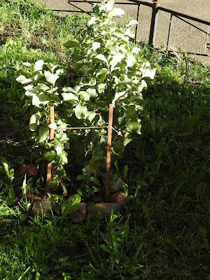 И всё это они растят из прутиков. Вот какая-то крохотная яблоня что ли: