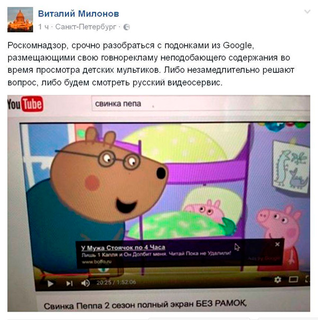 А вы знаете, что он требовал к ответу Гугл за то, что они показывают гадкую рекламу в сериях "Свинки Пеппы"? Он смотрит Пеппу, а ему всё удовольствие попортили.