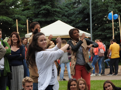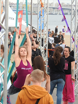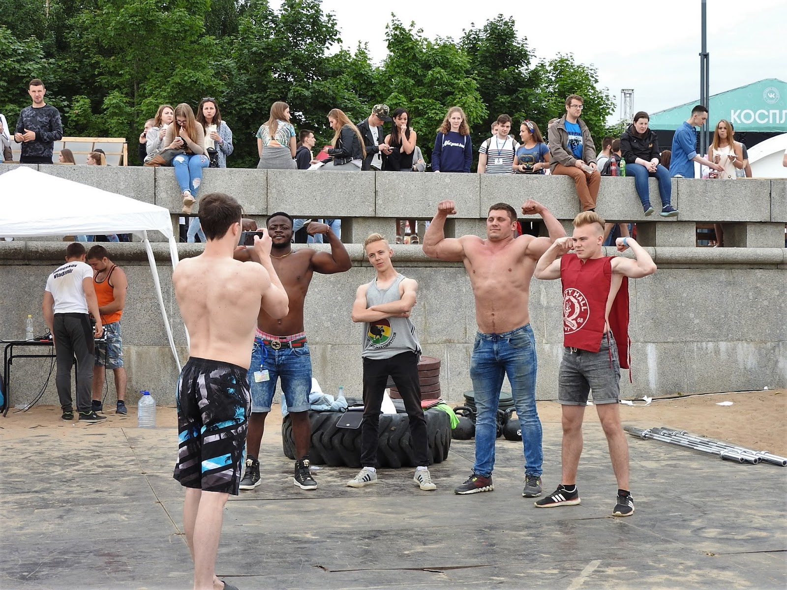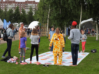 ВК Фест - ч. 1 ВК Фест - это прежде всего очень много людей. Хотя билет стоит 2 тысячи рублей. Наверное, онлайн он стоит дешевле, но я, как отсталая покупала на месте. А в кассе не принимают карты. Пришлось отдать всю наличность и ходить весь день голодной - еда в лавочках тоже в основном только за наличные. Под фестиваль отдана часть парка 300-летия в ебенях, недалеко от модной улицы Савушкина, где живут тролли и всюду нависает Башня. В парке есть луга и пляж, так что места для валяния и активного отдыха полно. Направо Башня, налево Зенит-Арена: На ВК Фест собираются все, от представителей пабликов, их палатки почему-то не пользовались популярностью, даже МДК и "Подслушано", до рекламодателей и охмурителей молодежи. Одним словом "много всего", всюду очень громко играет музыка, и это единственный случай, когда это к месту. А как по-другому тут может быть? Концертных площадок несколько, на самой большой, когда я пришла доигрывал Нойз МС, а когда уходила - Айова. Ведущий из РеутовТВ и Нойз МС При таком количестве людей и еды, довольно чисто. Помоек поставили много, а новое поколение дисциплинированное и мусором не разбрасывается. А еще это новое поколение самостоятельно образует очередь на фотографирование с чем-нибудь и не злоупотребляет терпением остальных. Обнимет надувного Тоторо, подруга делает пару снимков, и уступает место следующему. Наибольшим успехом, кроме еды, пользовались активные развлечения - фитнес, спортивные игры на пляже и танцевальные конкурсы. Что интересно, эти развлекухи не делятся на игры только для мальчиков и игры только для девочек. В павильонах компьютерных игр много девушек, а в танцах принимают участие парни. Вот чуваки танцуют степ-зумбу. В как я понимаю "охоте за мусором" - надо среди хлама найти части компьютера по списку - участвуют девушки: Финалисты танцевальной игры (у них в руках датчик, похожий на микрофон, по нему определяется игрок и точность его движений): У нынешнего поколения куда больше гендерного равенства в играх и развлечениях. Но и возрастного тоже - в команде бьюти-дева лет 20-ти, а остальные от семи до двенадцати: Но это равенство распространяется только на людей в пределах 25 лет. Поколение родителей - 30 и выше - уже не участвует в общих поскакушках, а составляет группу поддержки. Как обычно, много отцов и не только с сыновьями, но и с дочерьми. Что для нашего поколения видеть до сих пор непривычно. Когда мы были маленькими, папы с нами не ходили развлекаться. И вообще родители были заняты. | | 1:47p |