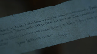 Тут я не выдержала и посмотрела в Авторитетных Источниках, что это было за письмо такое. Докладываю: письмо из первого сезона еще! Тогда Серсея, в присутствии Бейлиша и Вариса, между прочим, вынудила Сансу написать Роббу, чтобы заманить его в ловушку. Но Робб понял, что Санса по доброй воле никогда бы не назвала отца предателем, и собрался её спасать. Вот полный текст письма: Robb, I write to you with a heavy heart. Our good king Robert is dead, killed from wounds he took in a boar hunt. Father has been charged with treason. He conspired with Robert’s brothers against my beloved Joffrey and tried to steal his throne. The Lannisters are treating me very well and provide me with every comfort. I beg you: come to King’s Landing, swear fealty to King Joffrey and prevent any strife between the great houses of Lannister and Stark.