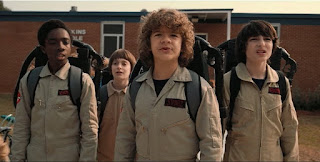 Правда, в этот раз сериал отошел чуть дальше от кино 80-х в сторону Стивена Кинга, которому он ужасно нравится именно потому, что по духу близок его романам, тому же "Оно" или "Ловцу снов". Дети из американского захолустья сражаются со злом, им помогают подростки и взрослые, но только те, кто готовы принять мир, существующий по правилам "Dungeons & Dragons", мир фантазий и научно-технического волшебства: чудищ выпускают на волю ученые, но их можно поймать в игрушечную ловушку для приведений и заснять на видео, знание бейсика поможет в борьбе с монстрами не хуже заклинаний, добрый гик из магазина всякой техники окажется героем. Старшие воспринимают детей всерьез и на равных, и не потому, что сохранили инфантильную веру в чудеса, а потому что знают, что монстры существуют, как существуют русские шпионы и теории заговора. С учетом недавнего заявления нашего президента, могу предположить, что он охотно вписался бы хоть в команду Майка, хоть в компанию Скуби Ду.