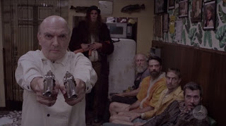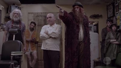 А Док очень некстати вспомнил, откуда он знает Салазара, тот его бквально как-то оставил без штанов. Он грабитель и жулик. Началась потасовка, Салазар чуть не спихнул Дока в подвал к зомби через тайный люк, который открывался рукояткой кресла, но Скетчи и Скизи помешали этому. Ворвался глухонемой в тулупе и стал стрелять во все стороны. Парикмахер и его подручный пригрозили всех убить, но тут в салон ввалились 10Тыщ и Лилли. Лилли высморкалась пальцами, 10 Тыща вырвало прямо в камеру (буэ), и тут же вырвало всех остальных. Опять начелась стрельба и драка, а Мёрфи выпустил из солярия зомби-женщину, которая там лежала. Жуткая жуть, она вся сморщилась, сиськи до пояса, живот до колен. Буээээ.