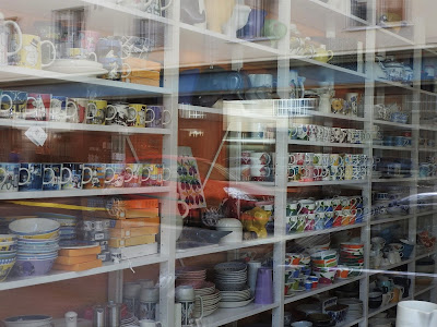 Но вообще неподалеку есть вот такая посудная лавка "ретро-деревенского" стиля. Она была закрыта, так что я сфоткала через стекло для общего представления.