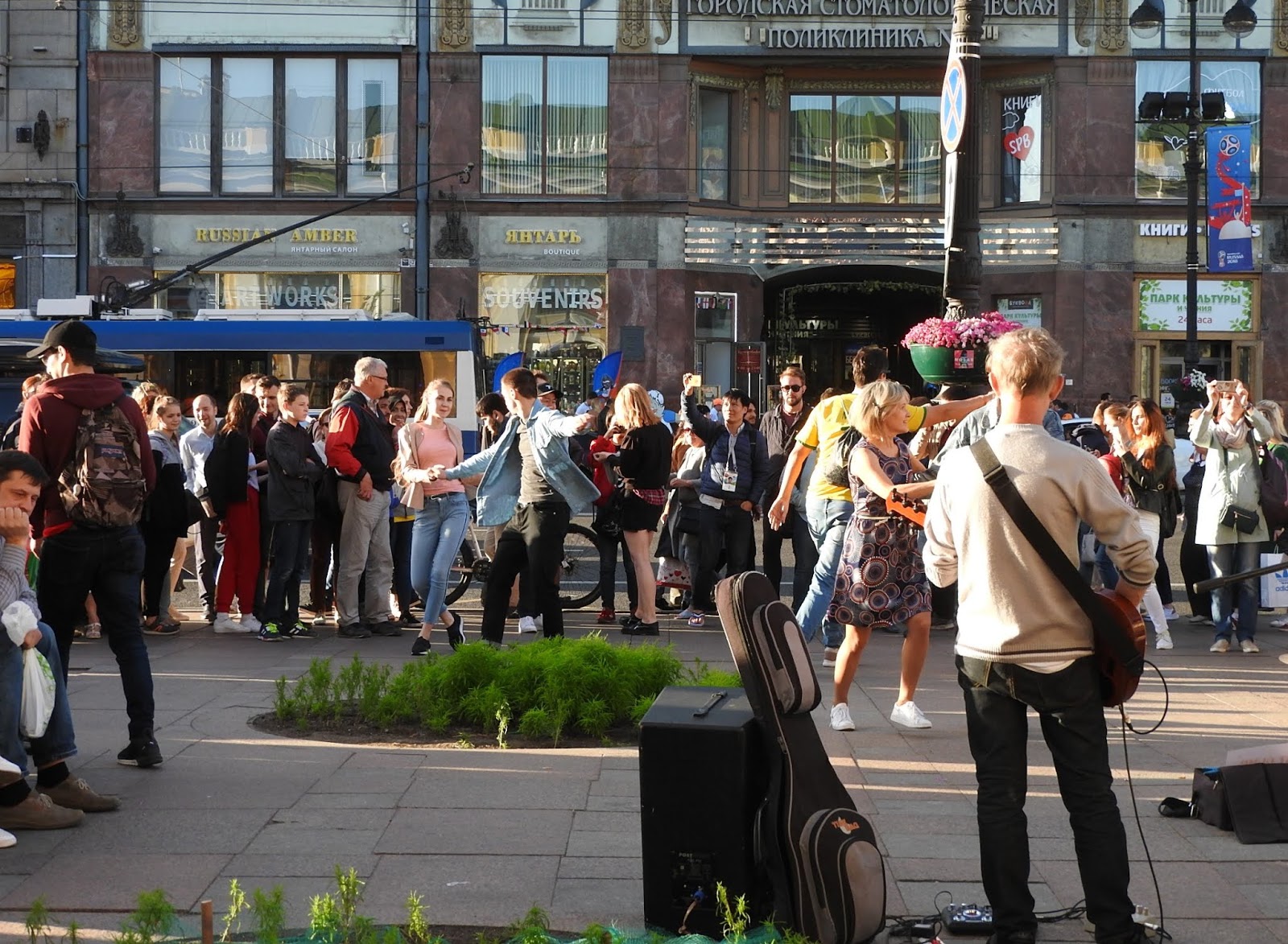 У Гостинки играла такая рокабилли-группа, Форест Гамп Блюз Бэнд, а для оживляжа свинговала пара из тех, кто ходит танцевать в Мани Хани.