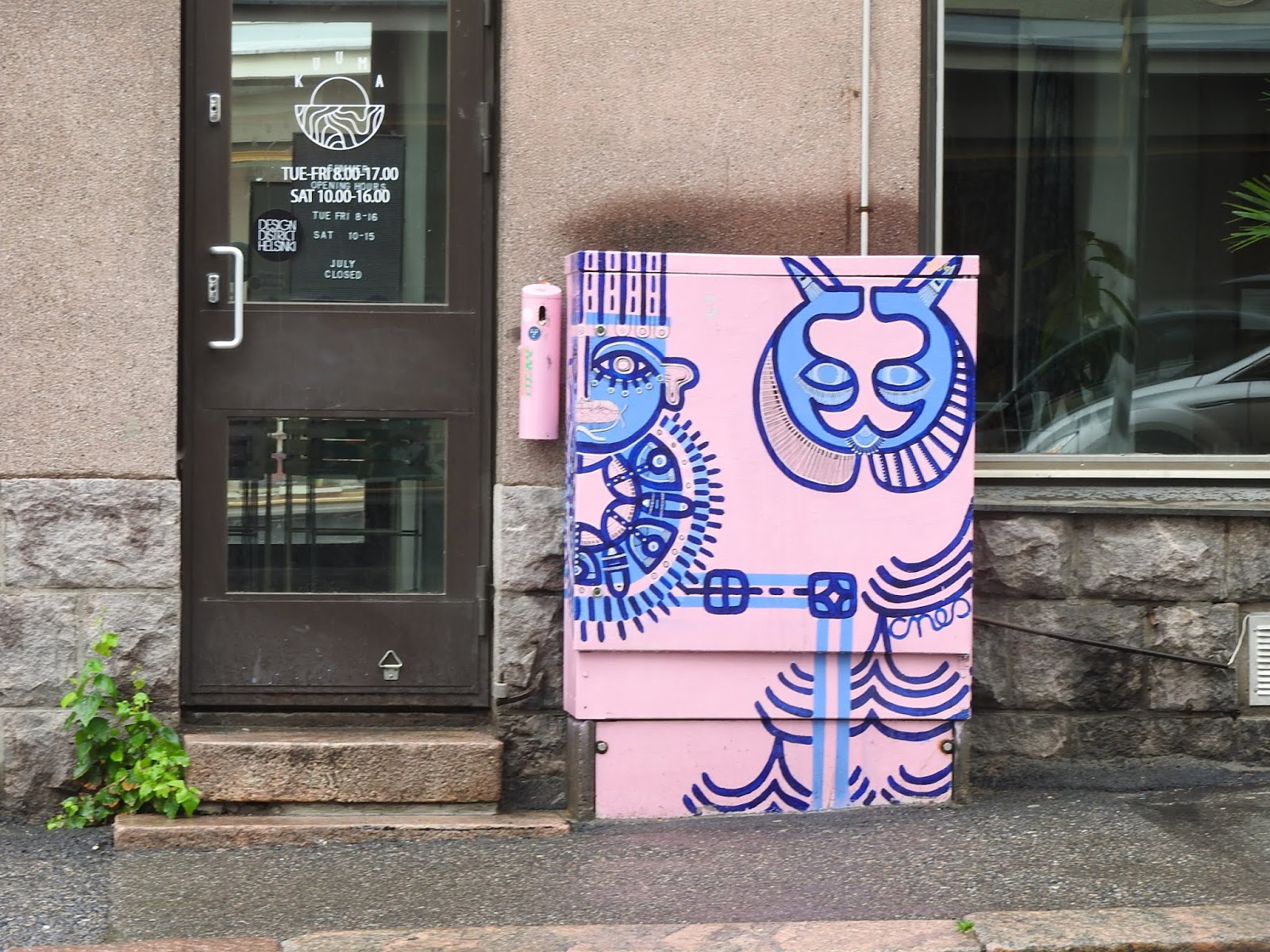 Хельсинки: дизайны В планах у меня был осмотр дизайнерского района, это в Пунавуори, от Булеварди, если стоять лицом к Манергейма, направо. От западного терминала минутах в 15-ти пешком, как раз по дороге к Эспланаде. Но дизайн почему-то оказался представлен многочисленными парикмахерскими и шоурумами интернет-магазинов, которые открыты только по запросу. Да и остальное раньше 11-ти не работает. Особо интересного я там не увидела, впрочем, погода не располагала к прогулкам.