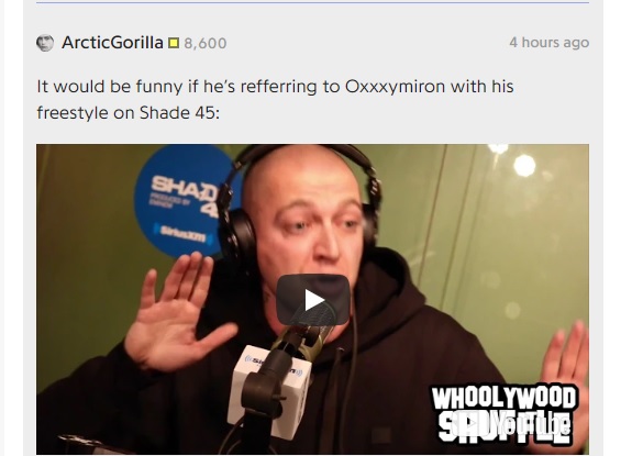 Но на том же Genius несколько раз спросили, кого он диссит в строчке про Shade 45, и русскоязычный юзер ArcticGorilla ответил, что было бы забавно, если бы речь шла об Оксимироне. Вот и понеслось.