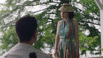 Хотя фоном проходят и грядущие президентские выборы, и ядерная истерия, объединяющая страх перед атомным оружием и запуск первых атомных электростанций, холодная война, маккартизм, но это лишь фрагменты реальности, просочившейся в красивые квартиры, заполненные женщинами с безупречными укладками и в невероятных шляпках. Тут художники по костюмам дали себе волю - шляпки потрясающие, и их много. А из фемагенды осталась только одна линия, которая идет сквозь весь сериал, - невозможность для женщины пробиться в искусстве. Живопись, литература, даже комедия для неё закрыты. Уж проще в бизнес.