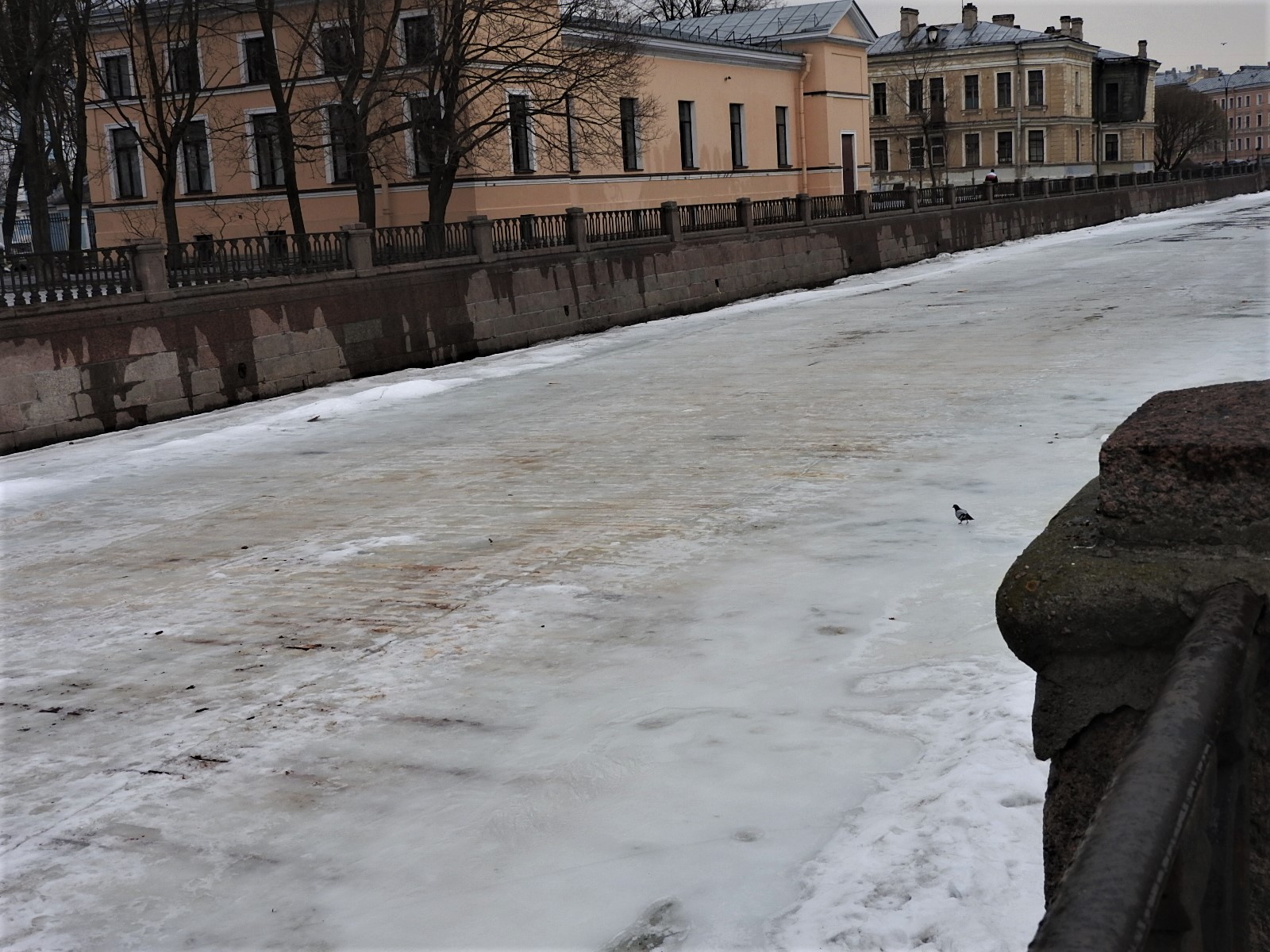 Киношное Продолжаем наблюдать, как идет разборка оставшихся от съемок "Серебряных коньков" настилов на льду. Синие панели убрали, они всё же слишком бросались в глаза, от них остались только сине-зеленые разводы на снегу, а остальное никак. Оно ж вмерзло.